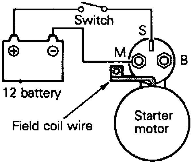 1. Disconnect field coil wire from M terminal of magnetic switch.