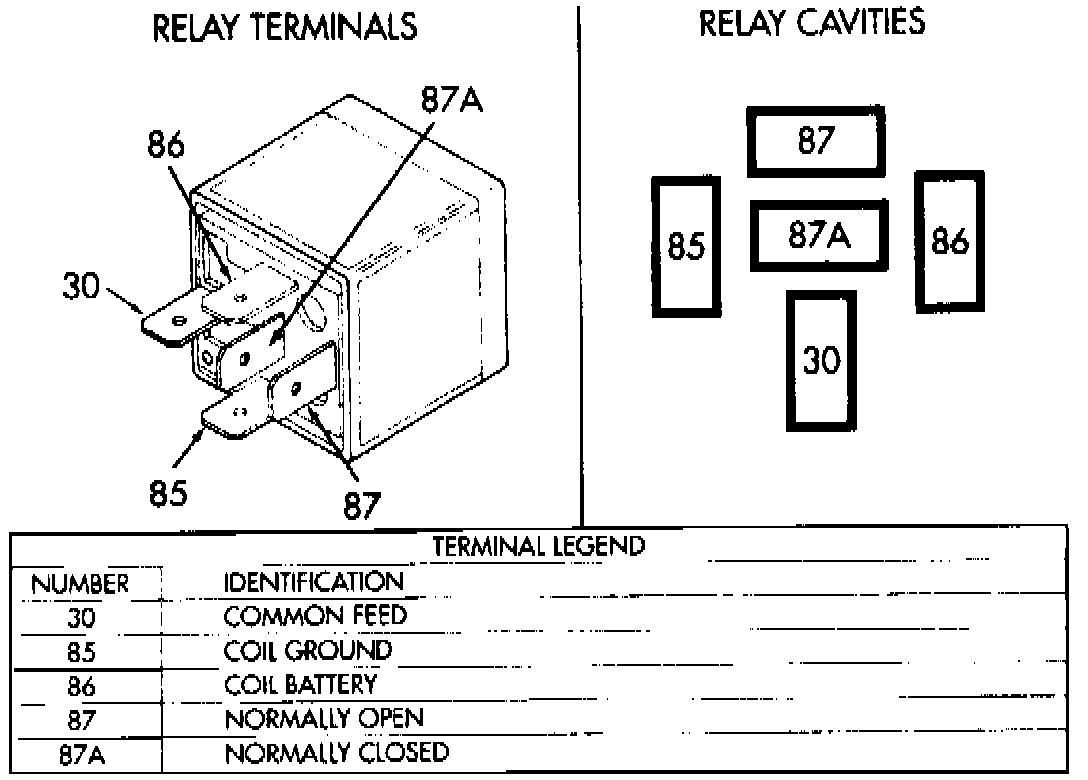 1. Locate and remove starter relay from power distribution center.Fig 1 Relay Pin & Terminal Identification: