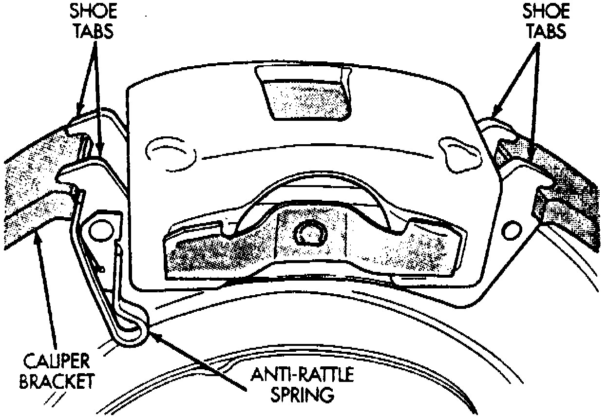 3. Ensure brake pads are positioned as shown, then complete caliper installation as outlined under Brake Caliper/Service and Repair.