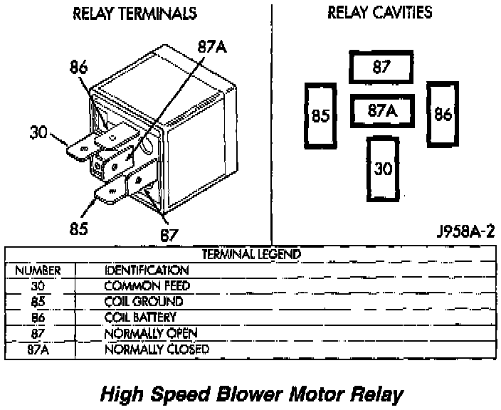 2. The relay normally closed terminal (87A) is connected to terminal 30 in the de-energized position, but is not used for this application. Go to Step 3.