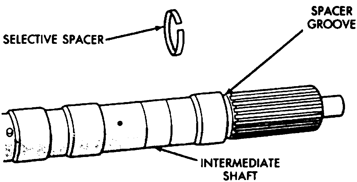 2. Install selective spacer in groove on intermediate shaft, just rearward of shaft rear splines, Fig. 11.