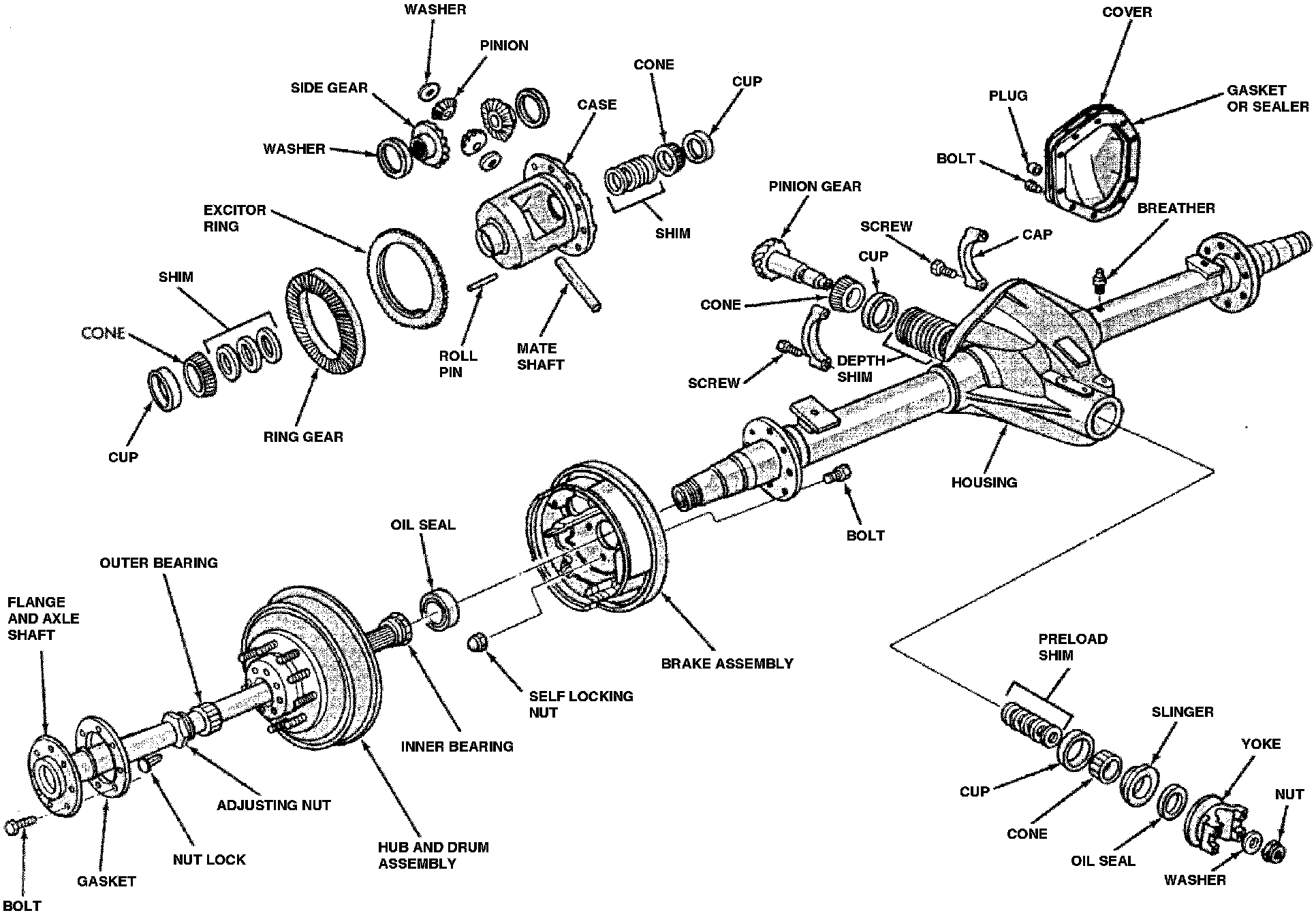 1. Raise and support vehicle, then disconnect propeller shaft from companion flange.Fig. 3 Exploded View Of Models 60, 70 & 80 Drive Axle: