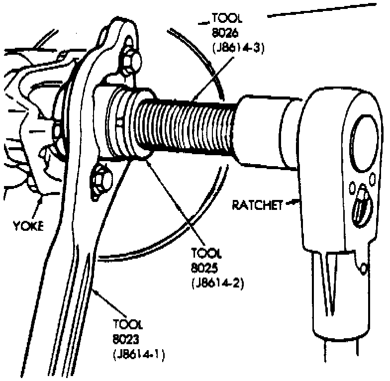 9. Measure pinion rotating torque (bearing preload) using suitable torque wrench. If preload is not within specifications, or if endplay is present, pinion must be disassembled for inspection.