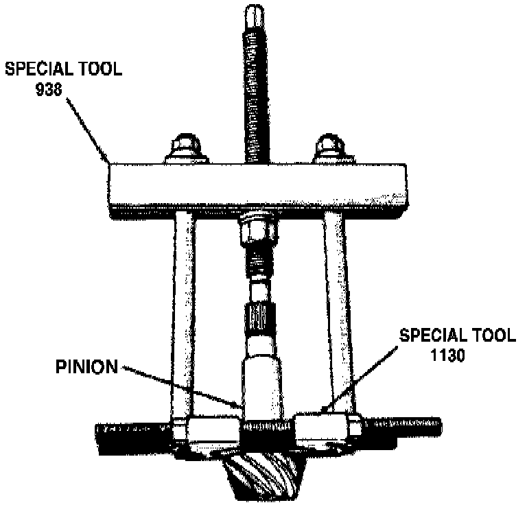 16. On models with 60, 70 and 80 axles, remove pinion rear bearing as shown.