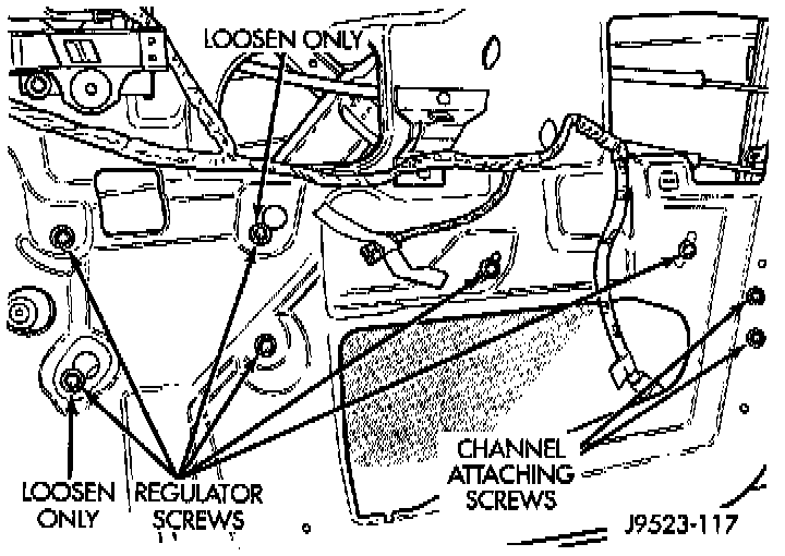 4. Remove 4 window regulator retaining screws.