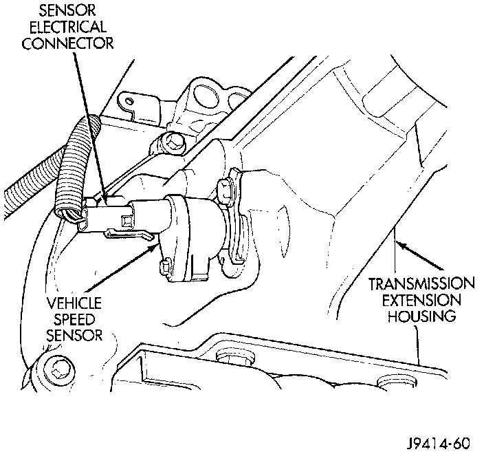 The vehicle speed sensor is located on the speedometer pinion gear adapter (Fig. 8). The pinion gear adapter is located on the extension housing of the transmission (drivers side - 2WD), or on the transfer case (4WD). The sensor input is used by the powertrain control module (PCM) to determine vehicle speed and distance traveled.