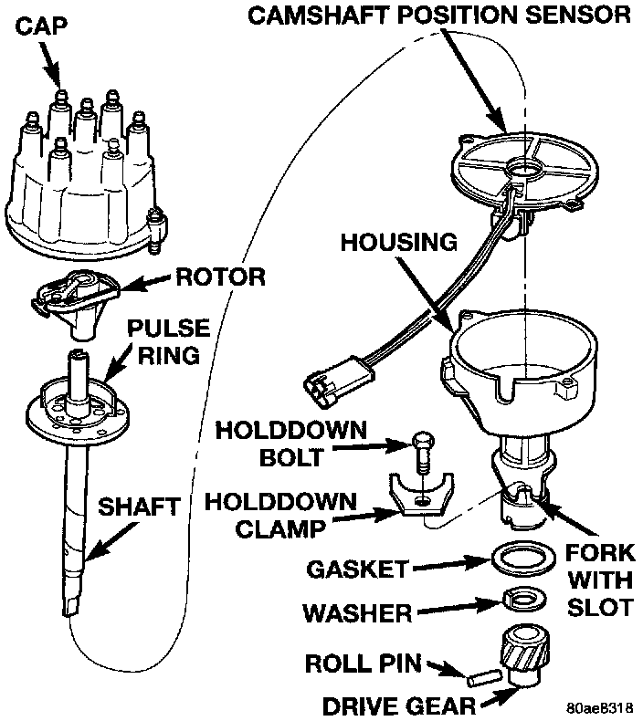 5. Remove camshaft position sensor from distributor housing. Lift straight up.