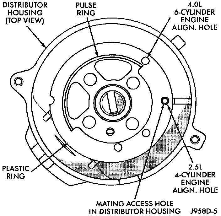 All distributors contain an internal oil seal that prevents oil from entering the distributor housing. The seal is not serviceable.Plastic Alignment Pin: