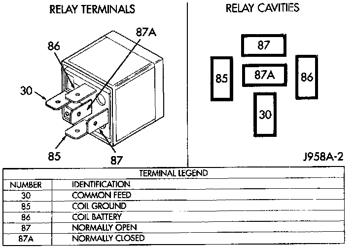 2. The relay normally closed terminal (87A) is connected to terminal 30 in the de-energized position, but is not used for this application. Go to Step 3.