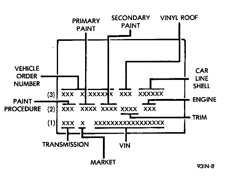 Refer to Vehicle Identification Number (VIN) paragraph for proper breakdown of VIN code.