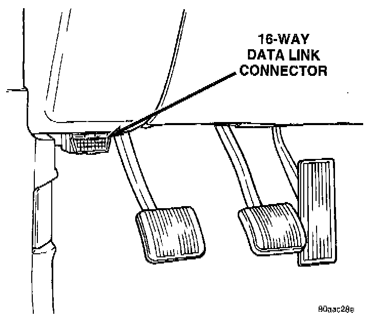 Technicians must retrieve stored DTC's by connecting the DRB scan tool (or an equivalent scan tool) to the 16-way data link connector. Refer to Diagnostic Trouble Codes.