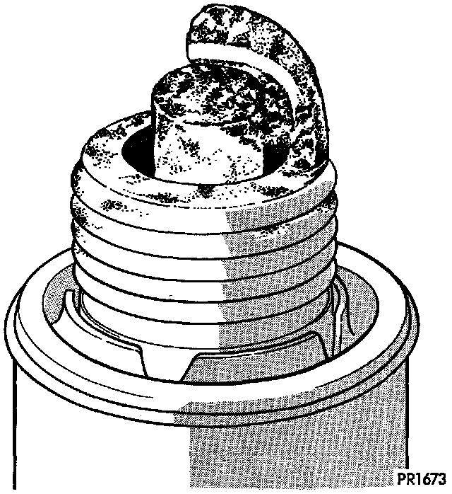 Determine if ignition timing is over advanced or if other operating conditions are causing engine overheating. (The heat range rating refers to the operating temperature of a particular type spark plug. Spark plugs are designed to operate within specific temperature ranges. This depends upon the thickness and length of the center electrodes porcelain insulator.)