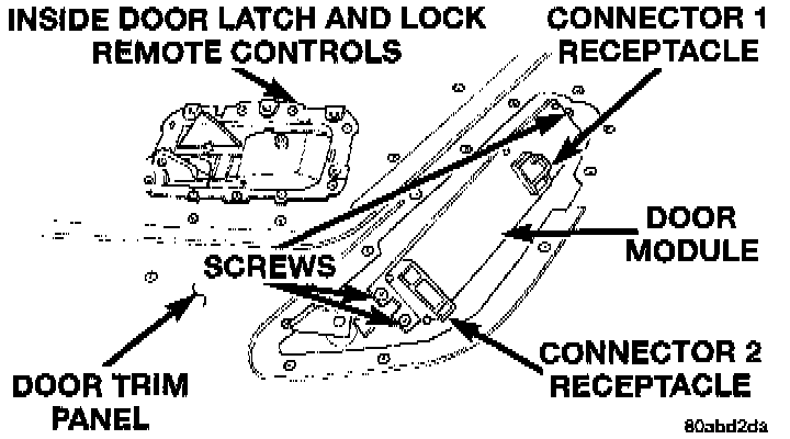 9. Remove the three screws that secure the door module to the front door trim panel.