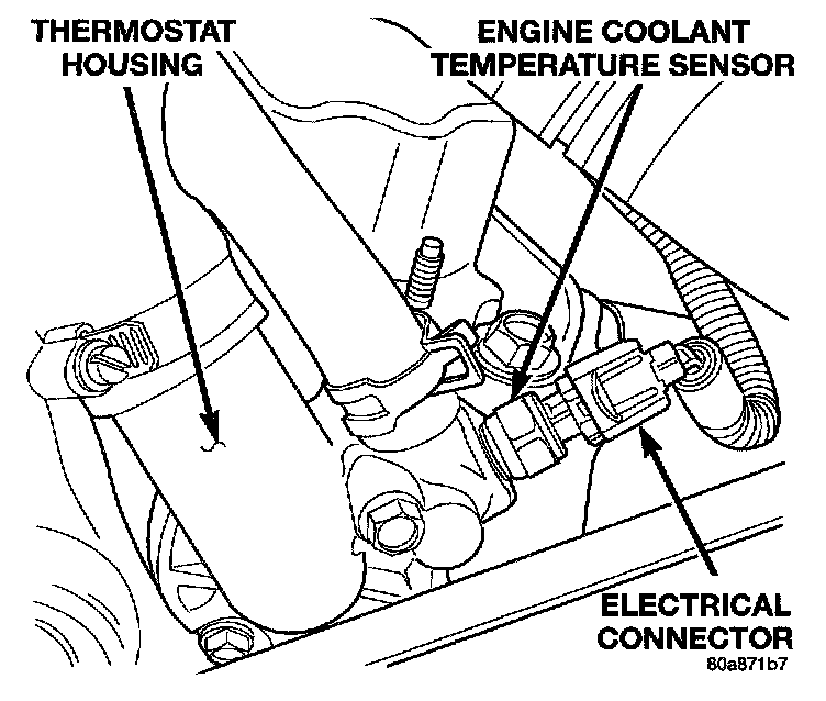 To perform a complete test of the engine coolant temperature sensor and its circuitry, refer to DRB scan tool and appropriate Powertrain Diagnostics Procedures. To test the sensor only, refer to the following:Engine Coolant Temperature Sensor - Typical: