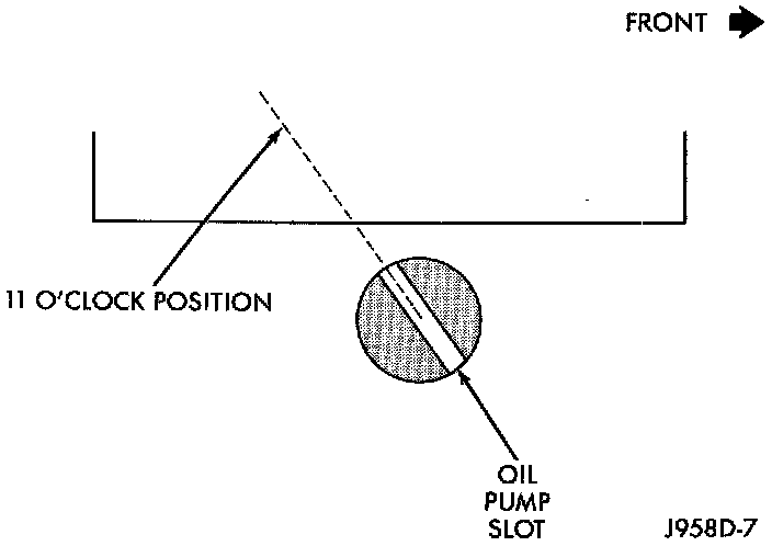 14. Observe slot in oil pump gear through hole on side of engine. It should be slightly before (counterclockwise of) 11 o'clock position.