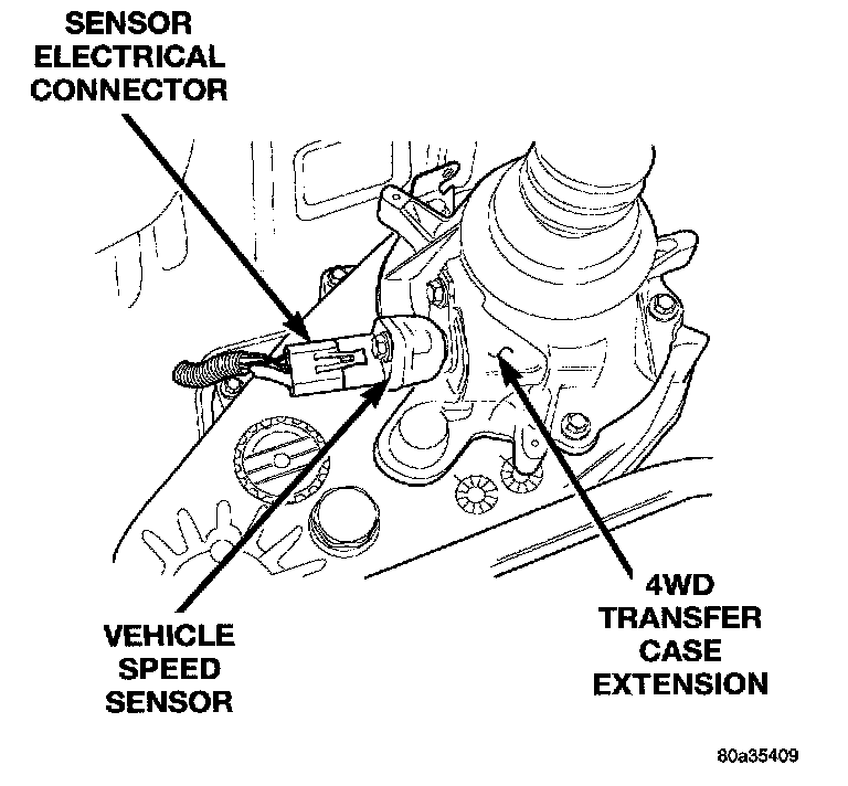 4. Remove sensor (pull straight out) from speedometer pinion gear adapter. Do not remove gear adapter from transmission.