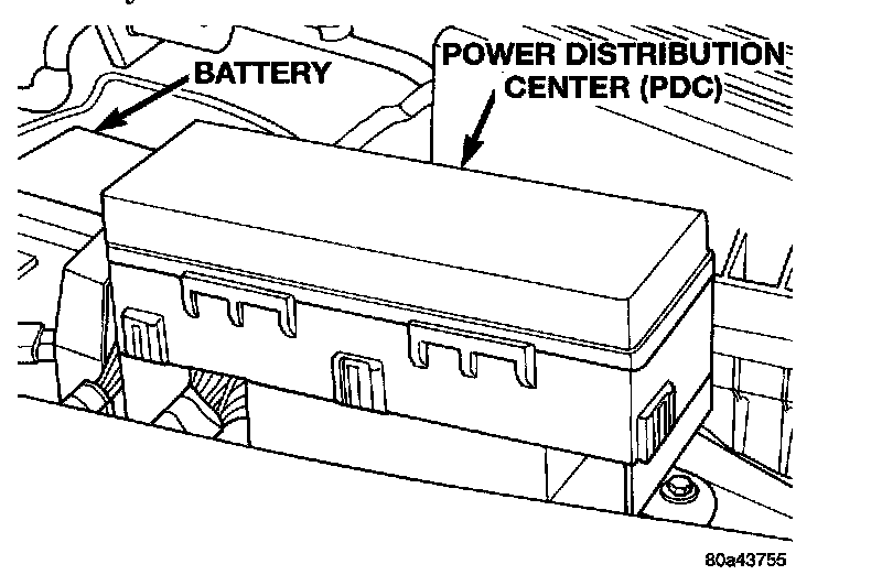 3. Check condition of relay terminals and PDC connector terminals for damage or corrosion. Repair if necessary before installing relay.