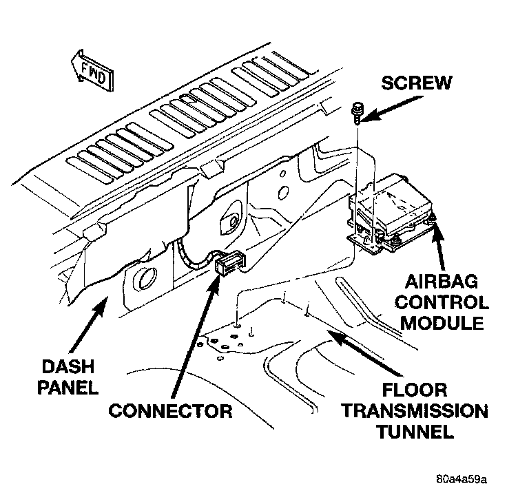 NOTE: Always remove and replace the airbag control module and its mounting bracket as a unit. Replacement modules include a replacement mounting bracket. Do not transfer the module to another mounting bracket.