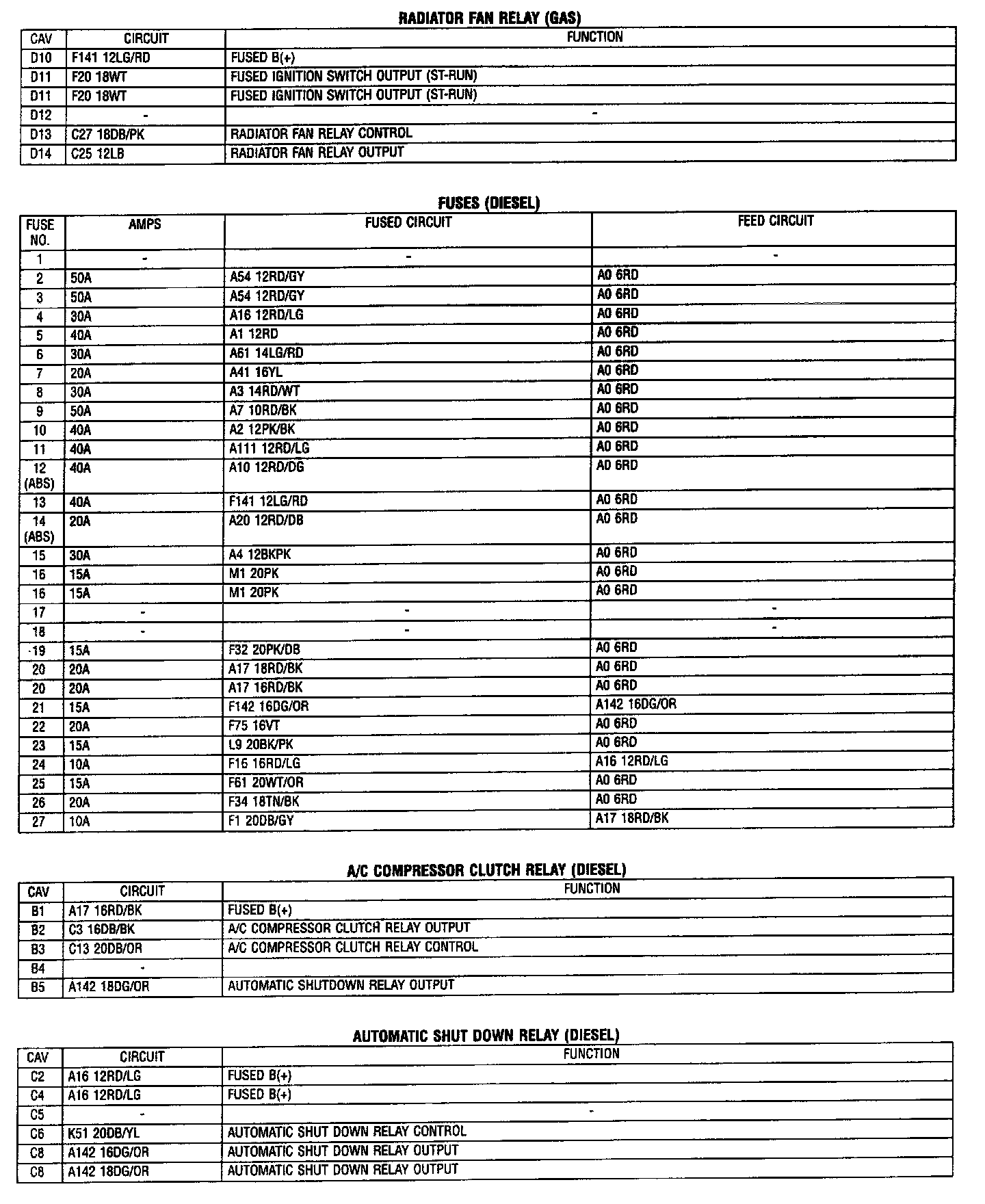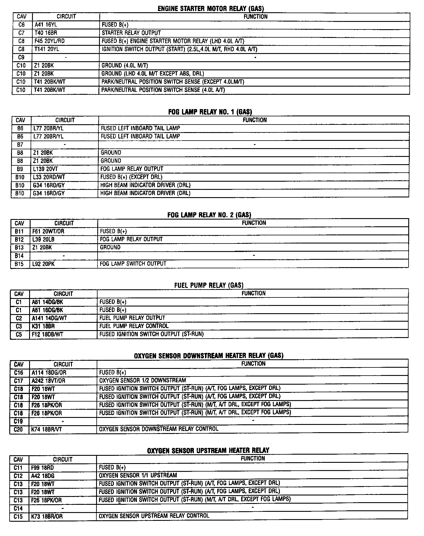 Connector Pin Out Tables 3 of 4