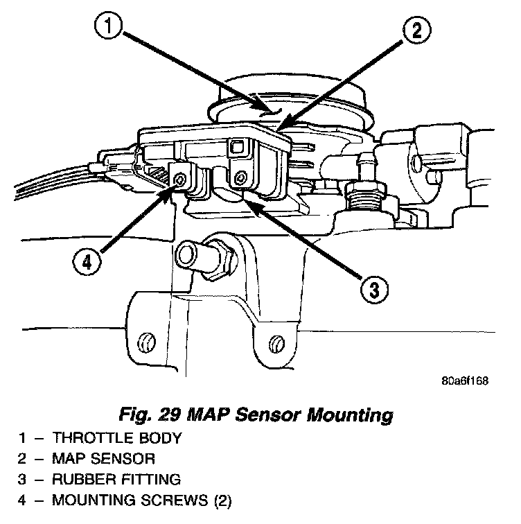 The MAP sensor is mounted to the side of the throttle body. An L-shaped rubber fitting is used to connect the MAP sensor to throttle body.