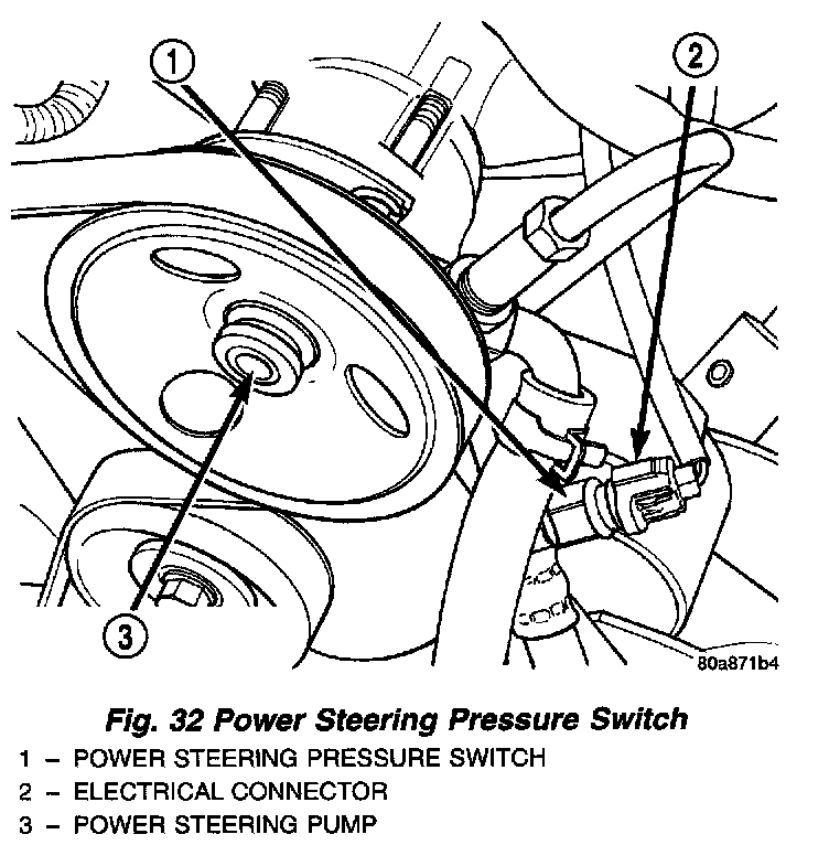 This switch is not used with 4.0L six-cylinder engines.Fig. 32 Power Steering Pressure Switch: