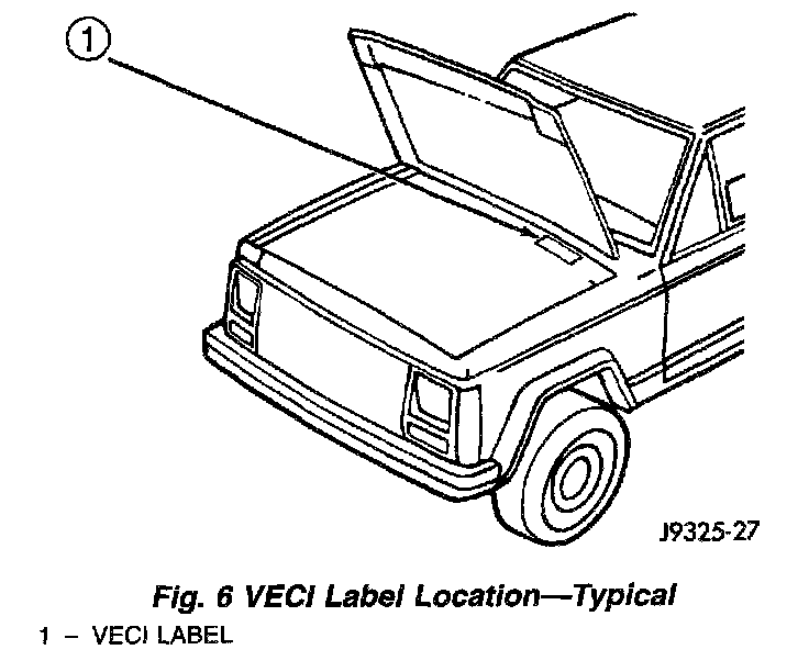 VEHICLE EMISSION CONTROL INFORMATION (VECI) LABELFig. 6 VECI Label Location - Typical: