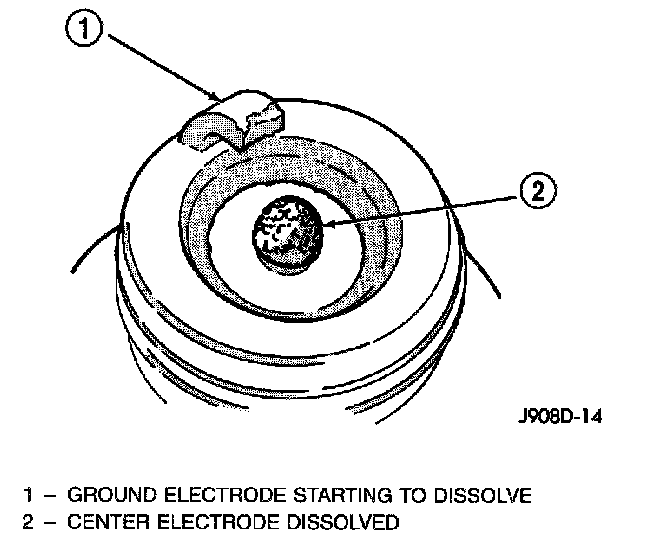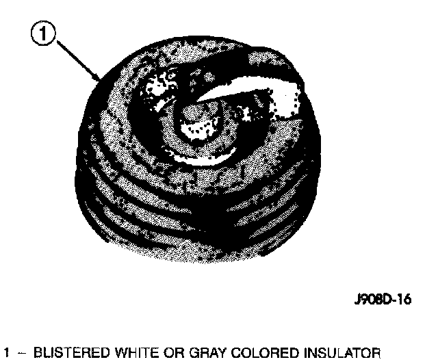 The few deposits present on the spark plug will probably be light tan or slightly gray in color. This is evident with most grades of commercial gasoline. There will not be evidence of electrode burning. Gap growth will not average more than approximately 0.025 mm (.001 in) per 3200 km (2000 miles) of operation. Spark plugs that have normal wear can usually be cleaned, have the electrodes filed, have the gap set and then be installed.