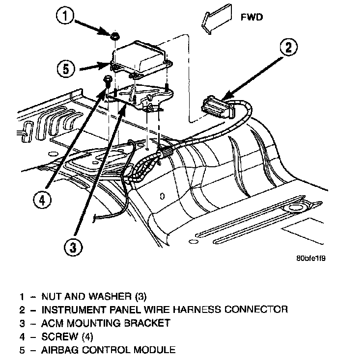 - NEVER STRIKE OR KICK THE AIRBAG CONTROL MODULE, AS IT CAN DAMAGE THE IMPACT SENSOR OR AFFECT ITS CALIBRATION. IF AN AIRBAG CONTROL MODULE IS ACCIDENTALLY DROPPED DURING SERVICE, THE MODULE MUST BE SCRAPPED AND REPLACED WITH A NEW UNIT. ALWAYS REINSTALL THE AIRBAG CONTROL MODULE PROTECTIVE COVER. FAILURE TO OBSERVE THIS WARNING COULD RESULT IN ACCIDENTAL,INCOMPLETE, OR IMPROPER AIRBAG DEPLOYMENT AND POSSIBLE OCCUPANT INJURIES.