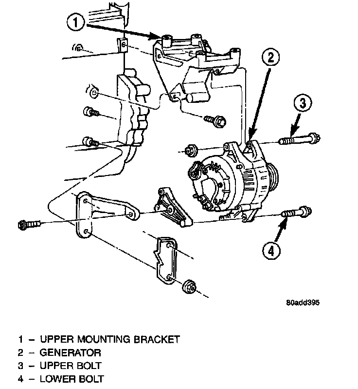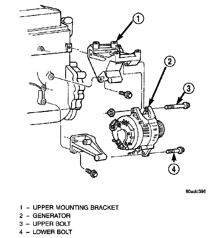 - Generator upper mounting bolt-55 Nm (41 ft. lbs.) torque.