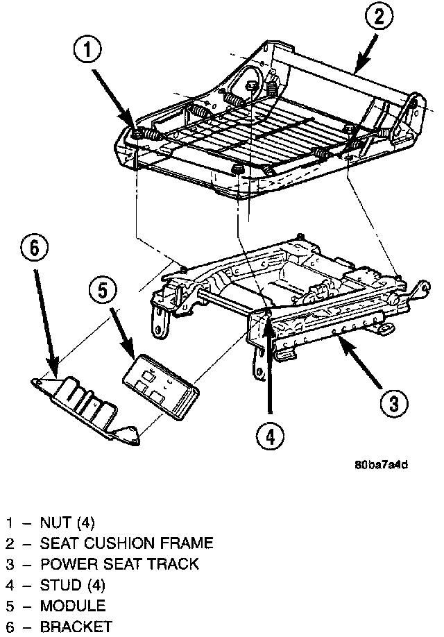 NOTE: Following installation, it will be necessary to initialize the Memory Seat Module (MSM) or Memory Heated Seat Module (MHSM). In order to function properly, the MSM or MHSM must "learn" the sensor values of each of the power seat motor position transducers in each of the adjuster hard stop positions. This is done by performing the "Reset Guard Band" procedure using a DRB scan tool and the proper Diagnostic Procedures.