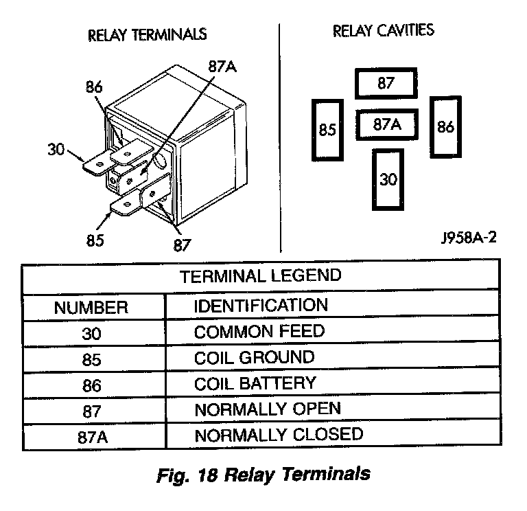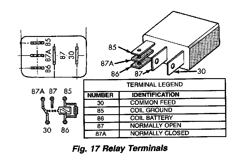- When the PCM de-energizes the relay, terminal number 87A connects to terminal 30. This is the OFF position. In the OFF position, voltage is not supplied to rest of circuit. Terminal 87A is the center terminal on relay.