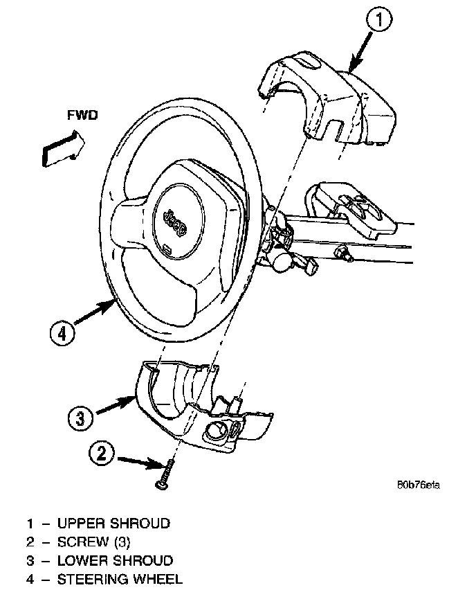 3. Remove the three screws that secure the lower steering column shroud to the upper shroud.