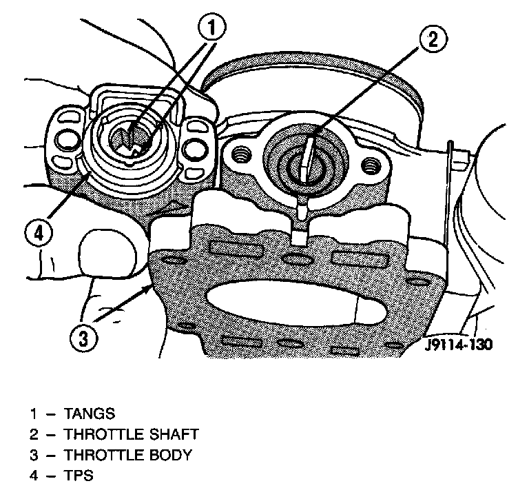 The throttle shaft end of the throttle body slides into a socket in the TPS. The TPS must be installed so that it can be rotated a few degrees. (If the sensor will not rotate, install the sensor with the throttle shaft on the other side of the socket tangs). The TPS will be under slight tension when rotated.