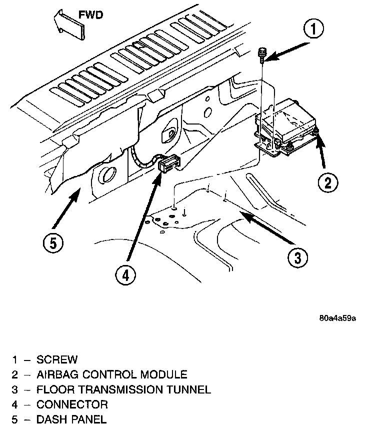 NOTE: Always remove and replace the airbag control module and its mounting bracket as a unit. Replacement modules include a replacement mounting bracket. Do not transfer the module to another mounting bracket.