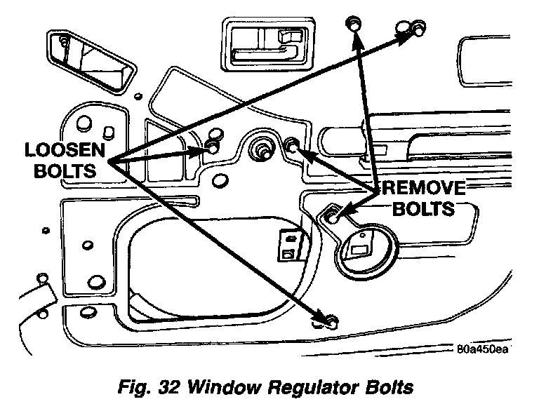 4. Remove the bolts attaching the regulator to the door inner panel.