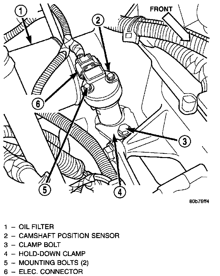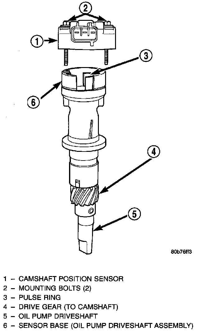 6. Install sensor to oil pump drive. After installation, the CMP sensor should face rear of engine 0°.