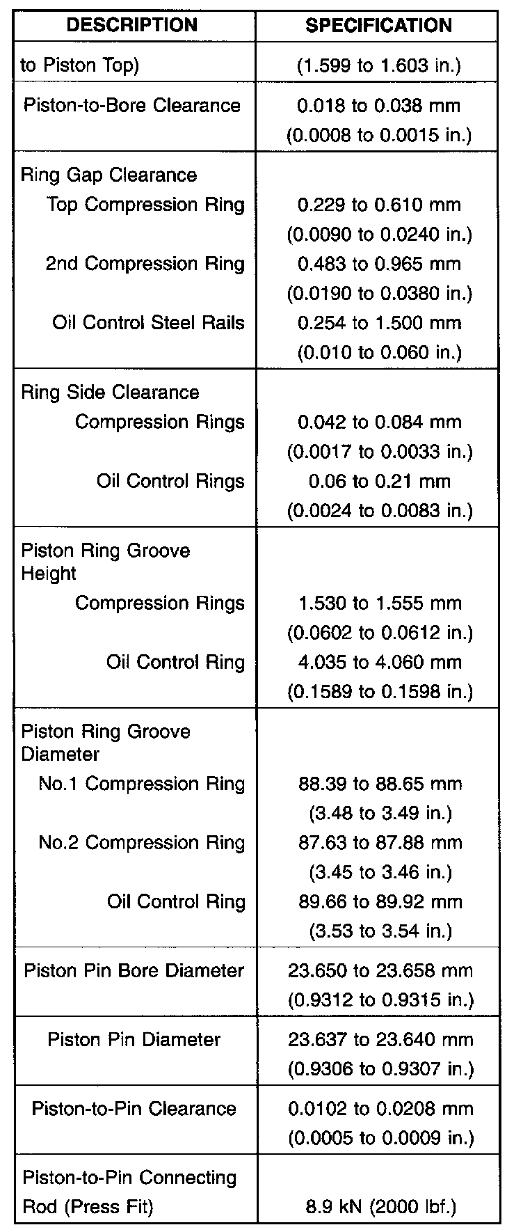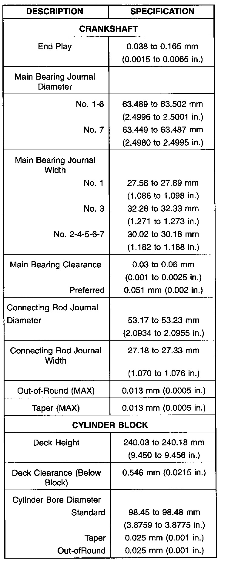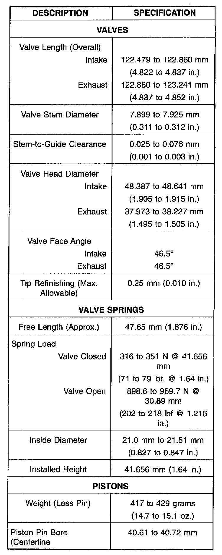 Engine Specifications