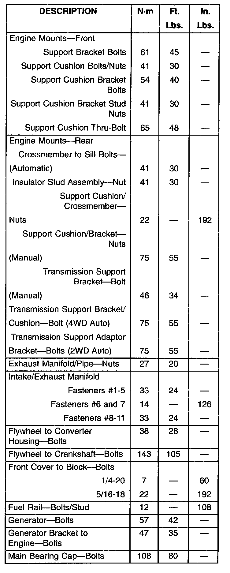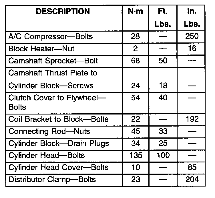 Torque Specifications