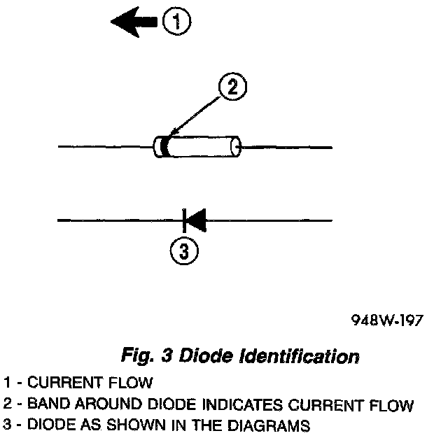 5. Install the new diode in the harness, making sure current flow is correct. If necessary refer to the appropriate wiring diagram for current flow.