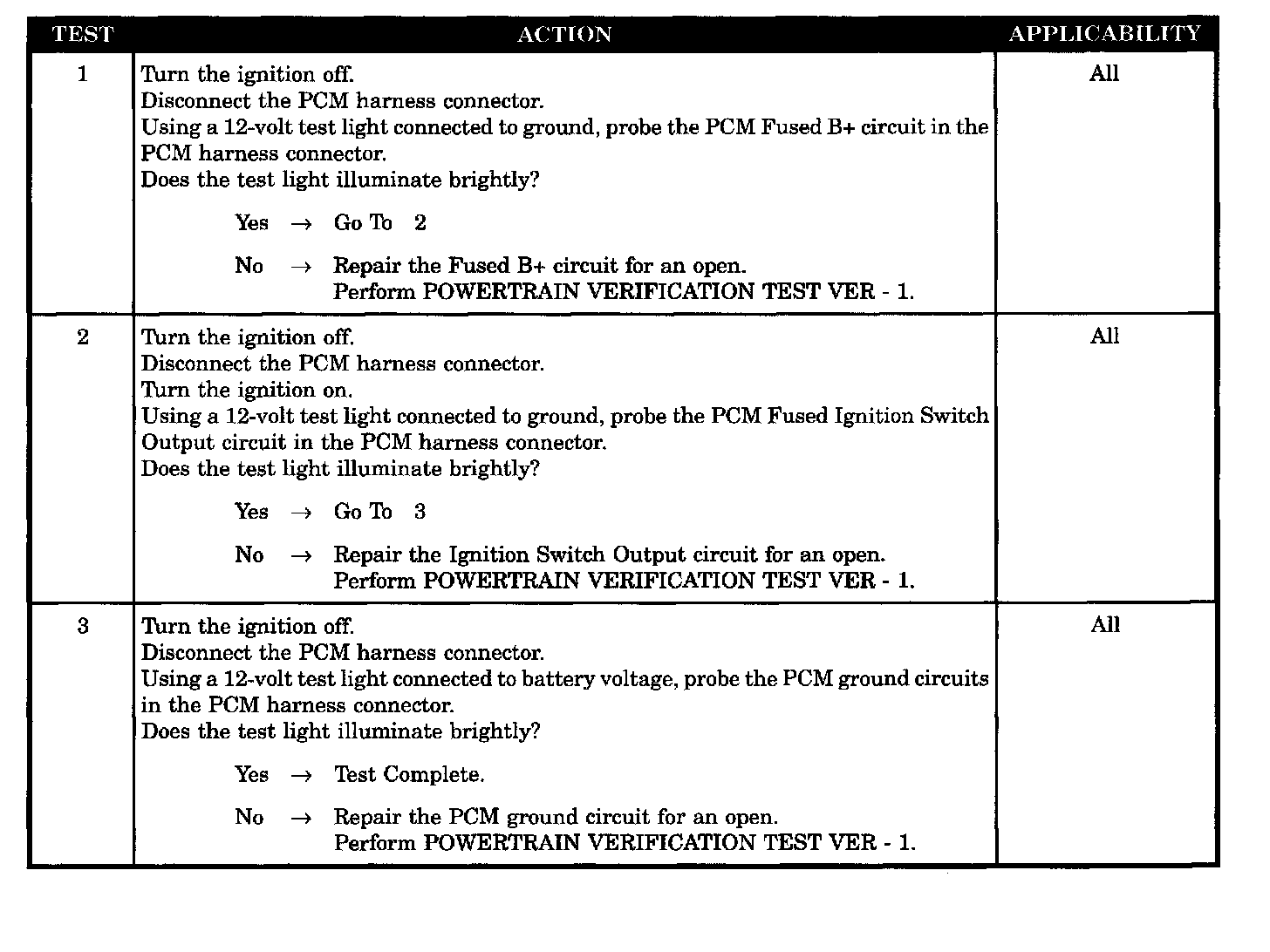 Checking the PCM Power and Ground Circuits