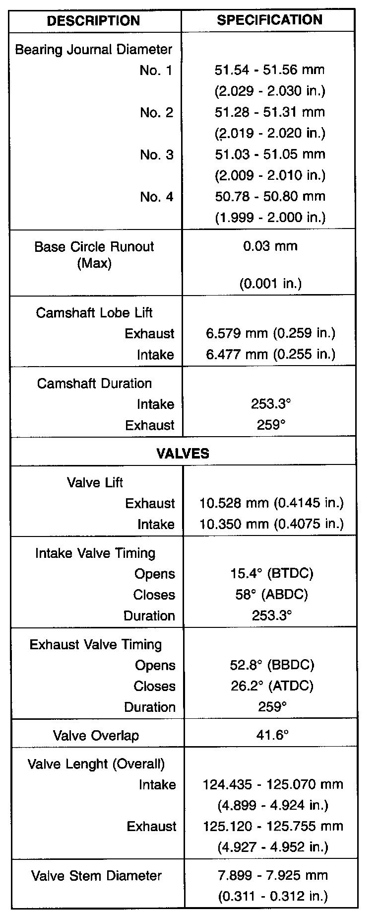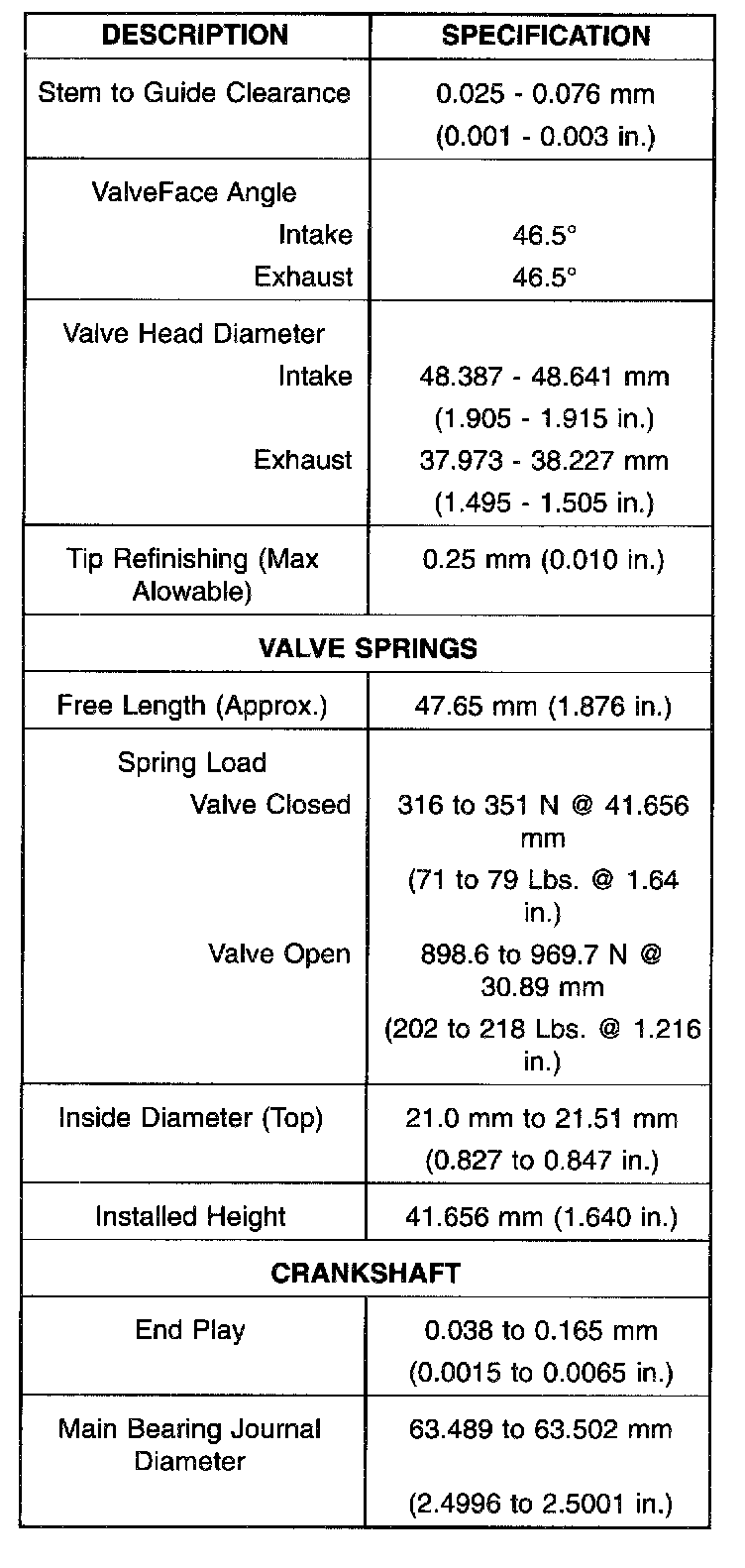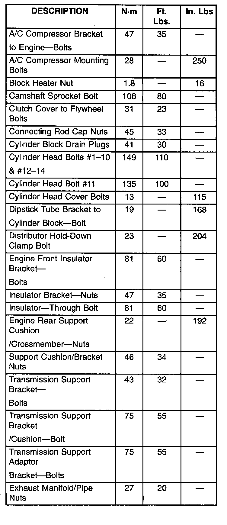 Torque Specifications
