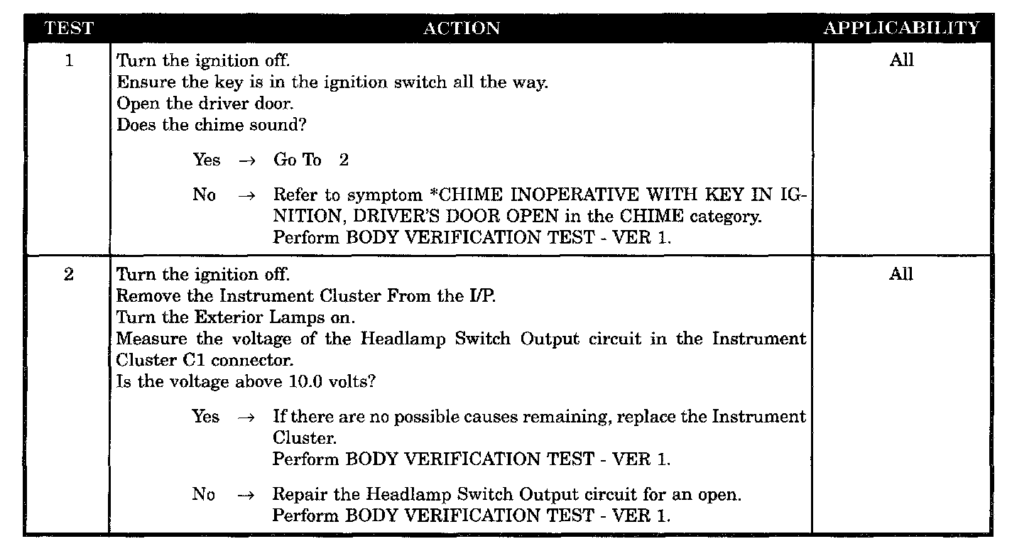 - Verify key-in ignition, driver's door open chime operation