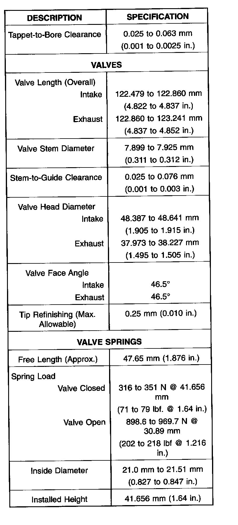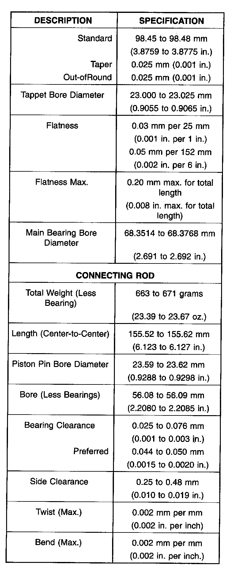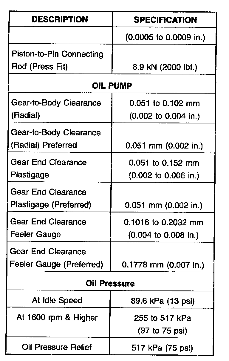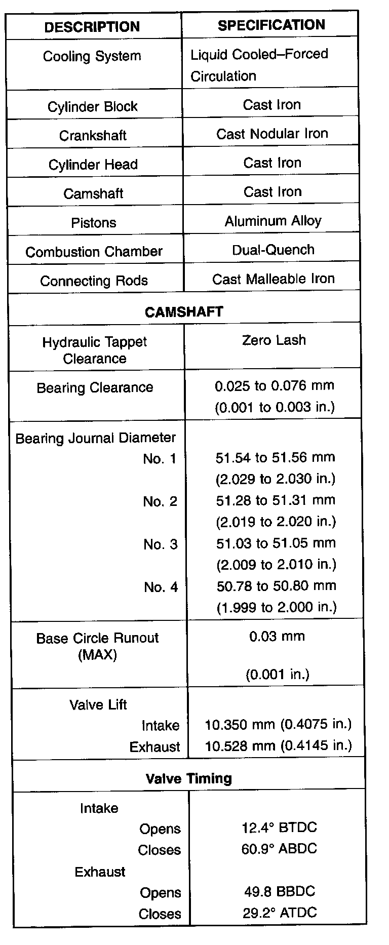 Complete Engine Specifications
