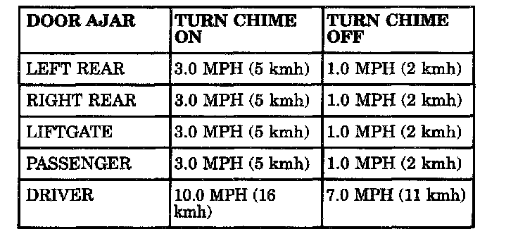 When the following messages are displayed the EVIC will send a chime request to the BCM. The BCM will respond with a series of chimes.