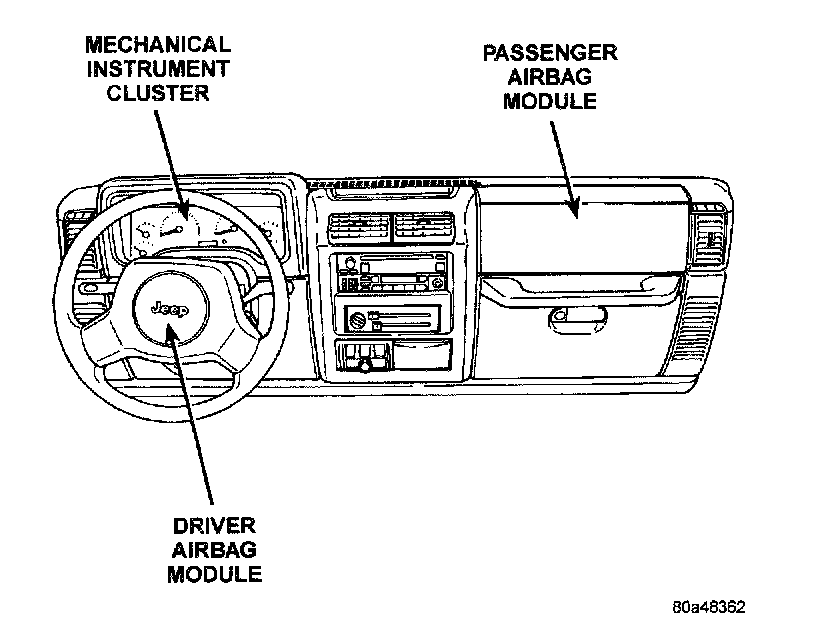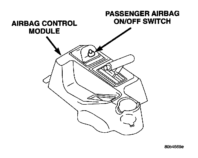 The Airbag Control Module (ACM) is secured with four screws to a mounting bracket that is welded onto the top of the floor panel transmission tunnel below the instrument panel and forward of the center floor console in the passenger compartment of the vehicle.