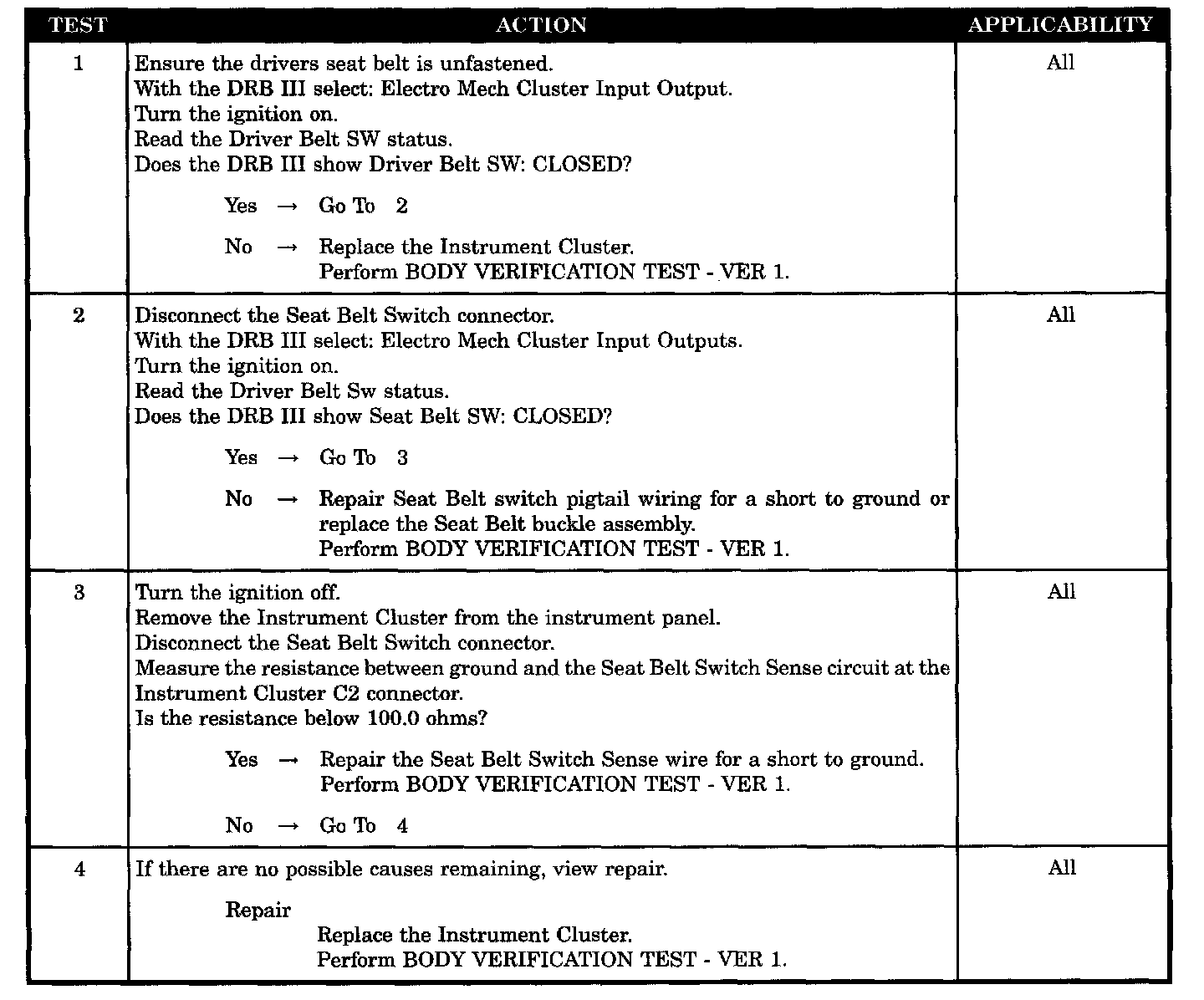 - Instrument cluster - seat belt switch shorted