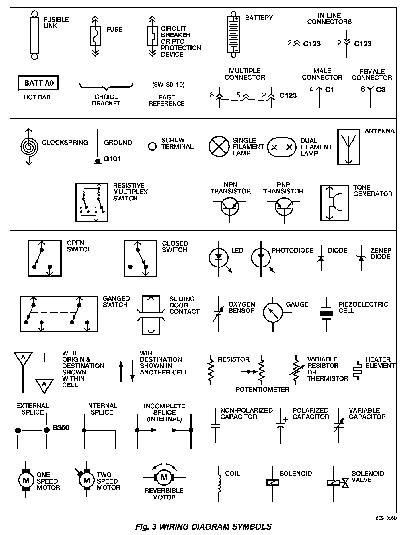 International symbols are used throughout the wiring diagrams. These symbols are consistent with those being used around the world (Fig. 3).