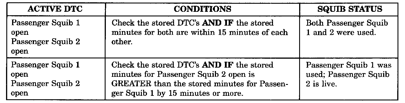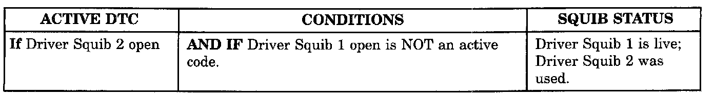 The code becomes active as soon as the malfunction is detected or key-on, whichever occurs first. An active trouble code indicates an on-going malfunction. This means that the defect is currently there every time the airbag control module checks that circuit or component. It is impossible to erase an active code. Active diagnostic trouble codes for the airbag system are not permanent and will change within 12 seconds the reason for the code is corrected. With the exception of the warning lamp trouble codes or malfunctions, when a malfunction is detected, the airbag lamp remains lit for a minimum of 12 seconds or as long as the malfunction is present.