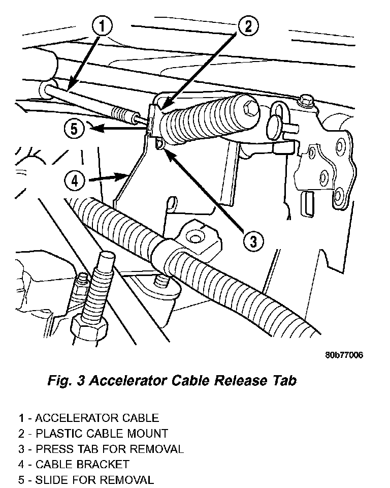 Fig.3 Accelerator Cable Release Tab - 4.7L V-8 Engine: