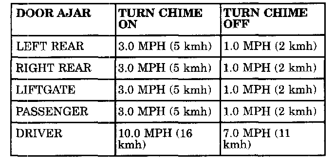 - Door or liftgate ajar (when critical speed is reached)